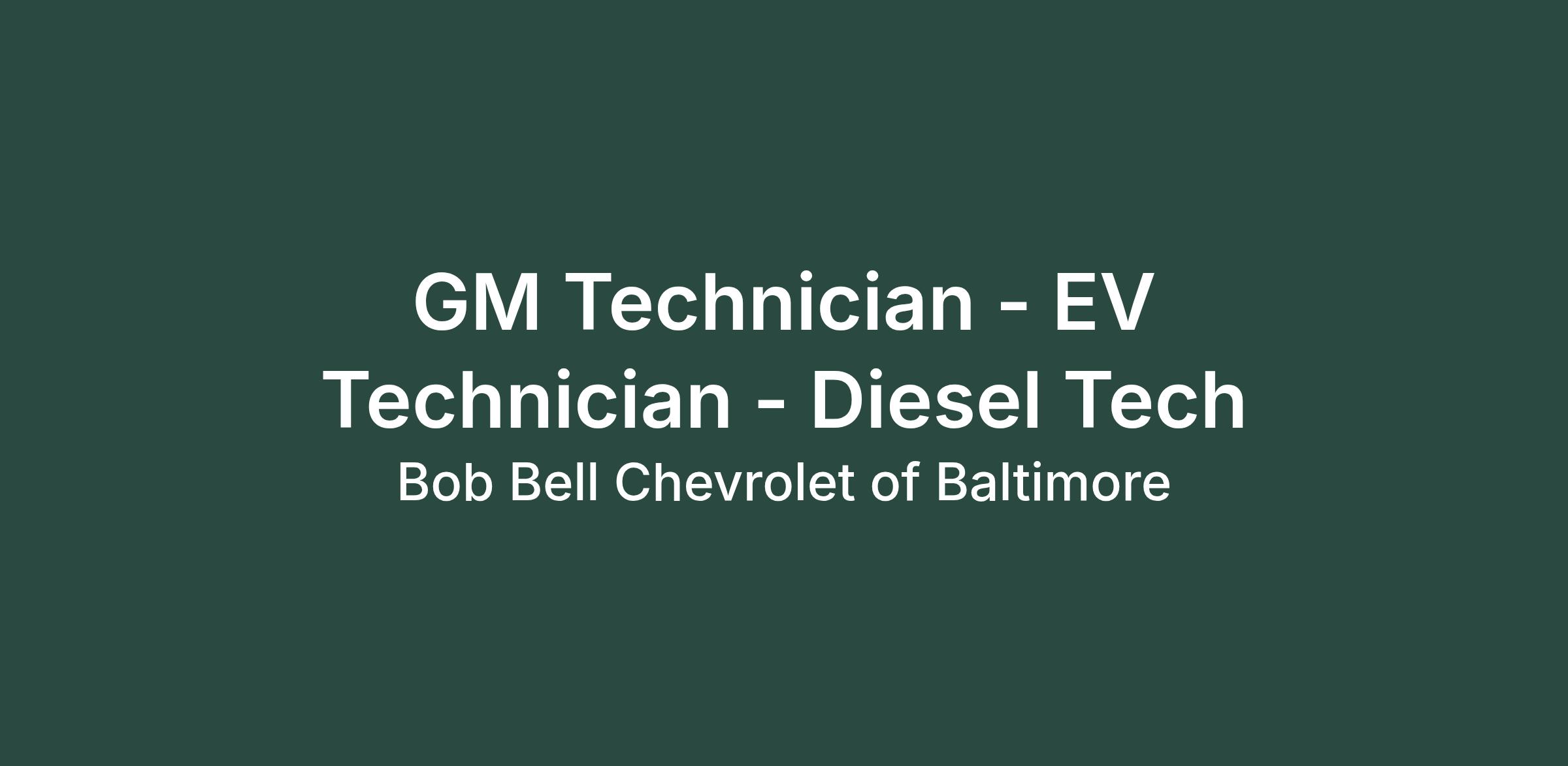Master GM Technician, Diesel Tech and EV Technician Needed at Bob Bell Chevrolet